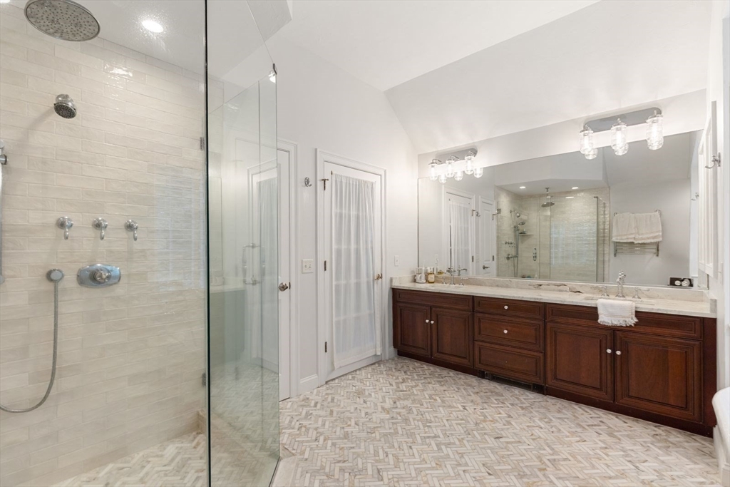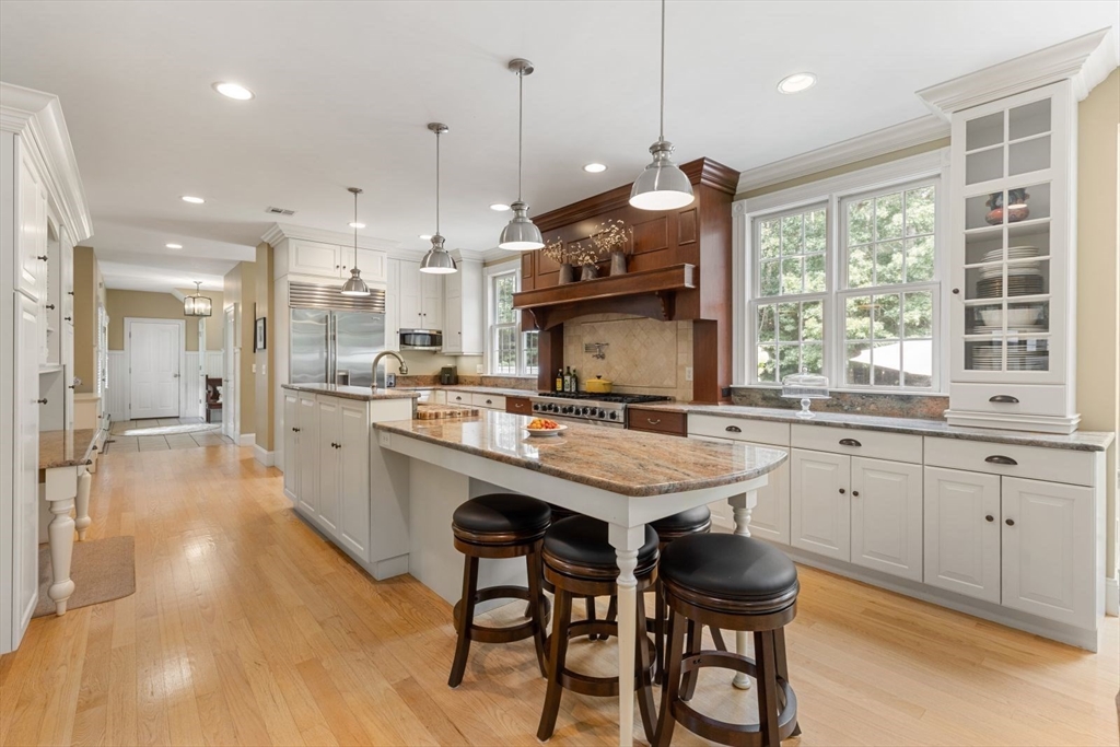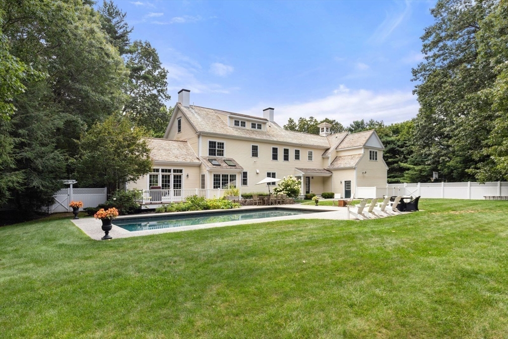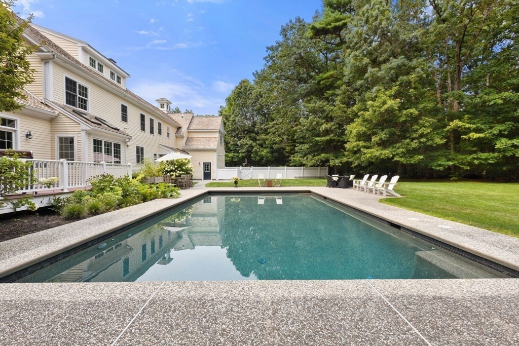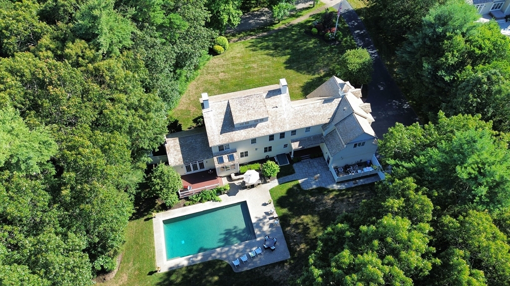 Located in an executive neighborhood is this 5 bedroom colonial on a beautiful, private lot complete with in-ground Gunite pool.Every amenity expected in a home of this caliber is present including a semi-open floor plan, transom window doorways, extensive millwork, coffered & vaulted ceilings, inlaid hardwood floors, a stone fireplace, Viking, Subzero, & Bosch appliances, a private home office complete with a 3/4 bath, a fully finished basement.The master retreat features a walk-in closet & newly remodeled marble bath w/radiant heat.The three car garage is heated & the exterior is Hardy Plank.The roof is red cedar topped with a lighted weathervane.Outside,you'll find a bluestone patio, professional landscaping,well water for irrigation & 7 minutes to access highway pointing north or south.Shopping is a mere 5 minutes away&there are an array of beaches in both Marshfield & Duxbury within a 4-5 mile drive.Perched on arguably the best lot in the neighborhood, this gem is sure to impress